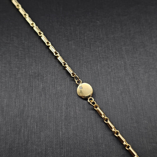Bracelet in 9K Yellow Gold with Round Pendant and Cubic Zirconia