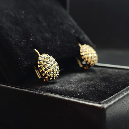 Earrings in 9K Yellow Gold with Natural Black Sapphires