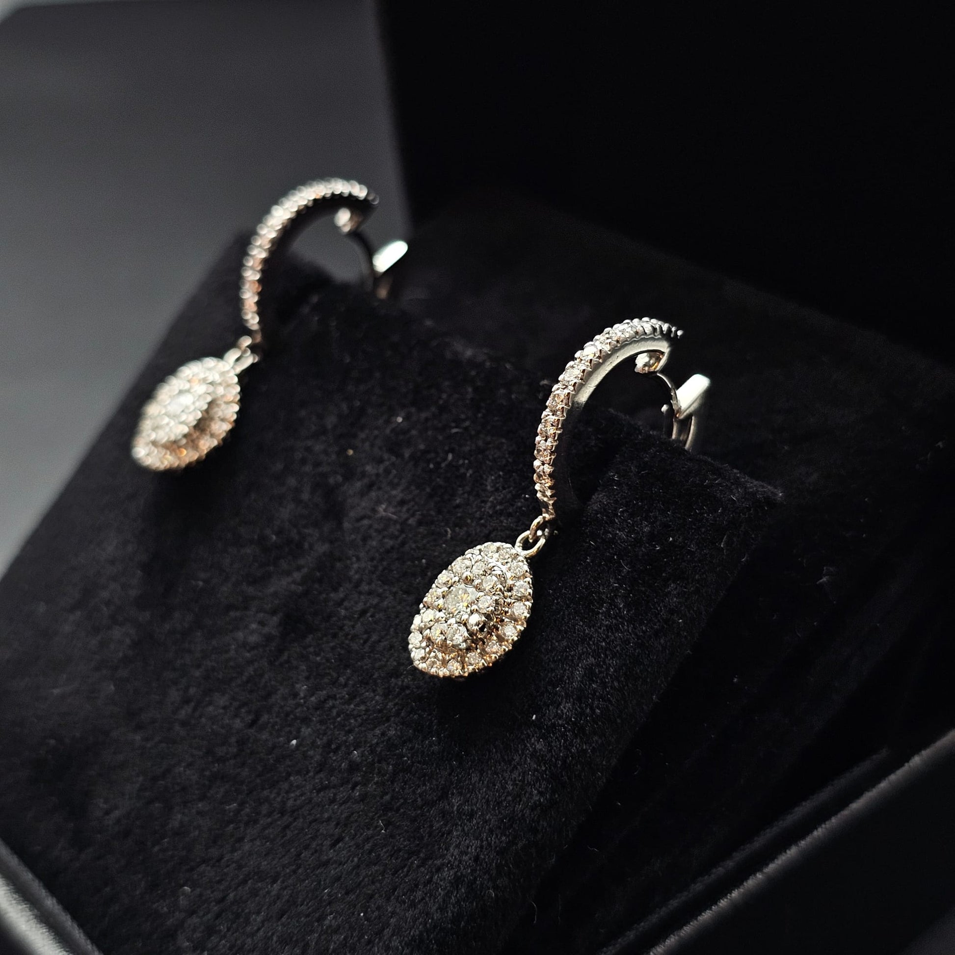 Orecchini ovali in oro bianco 18 kt con diamanti naturali (0,95 ct totali)