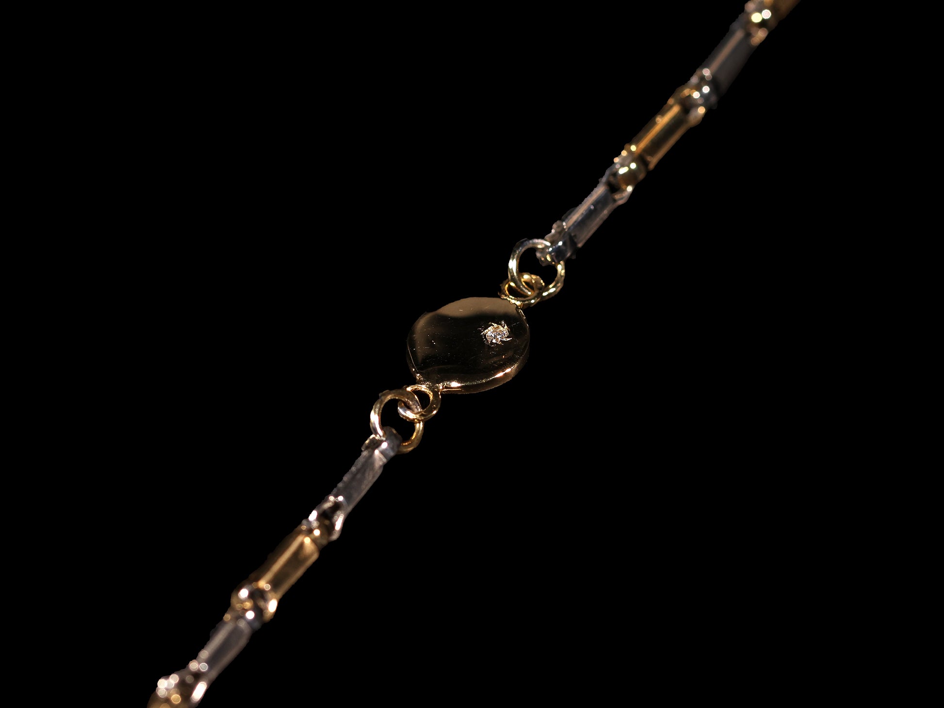Bicolor Bracelet in 9K Yellow and White Gold with Round Pendant and Cubic Zirconia