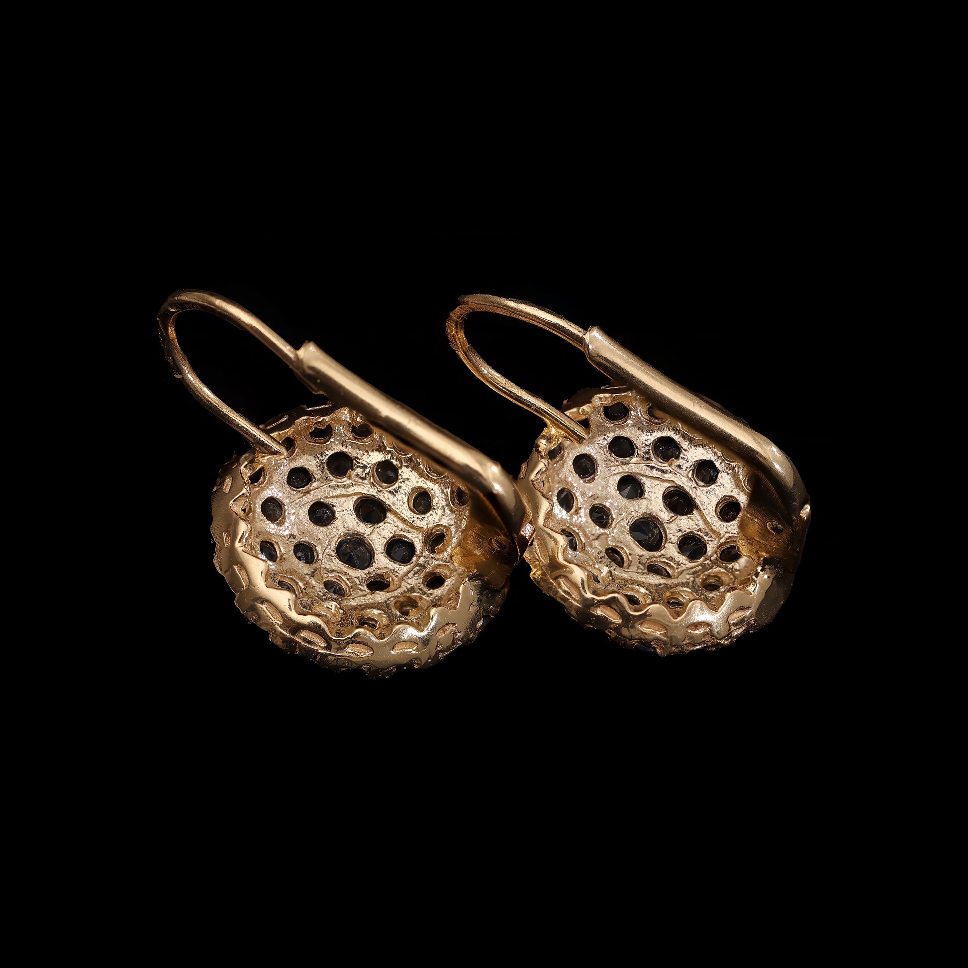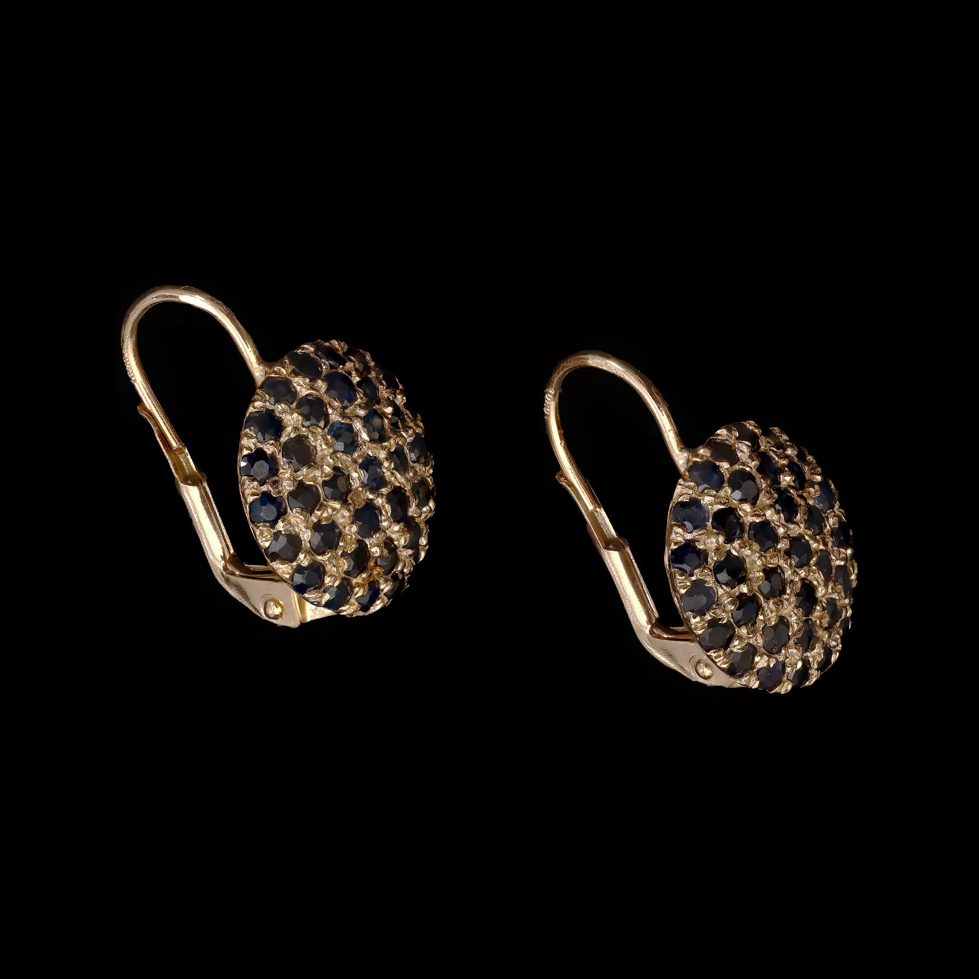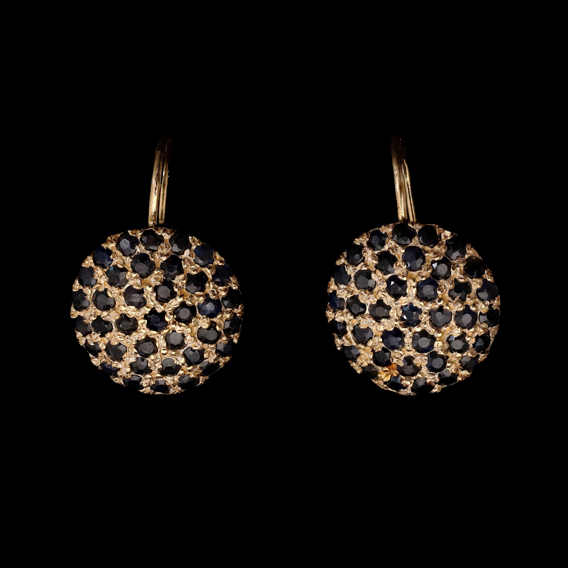 Cercei rotunzi din aur galben 9 kt cu safire negre